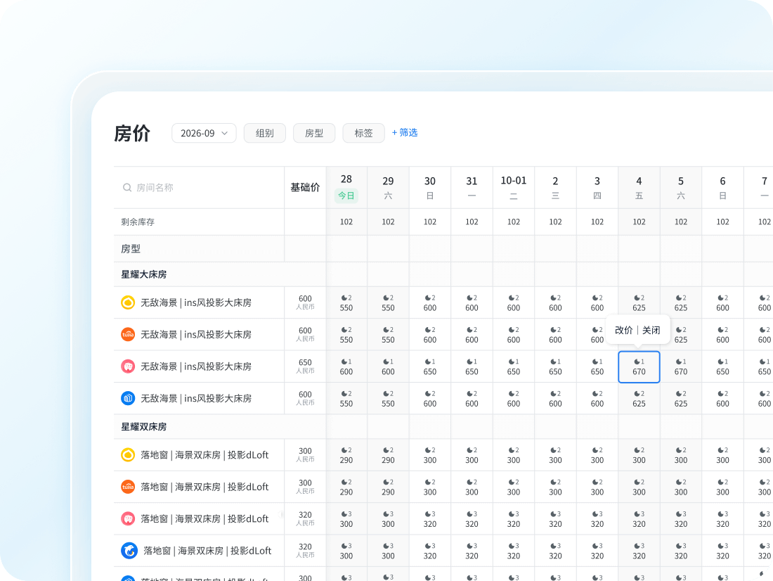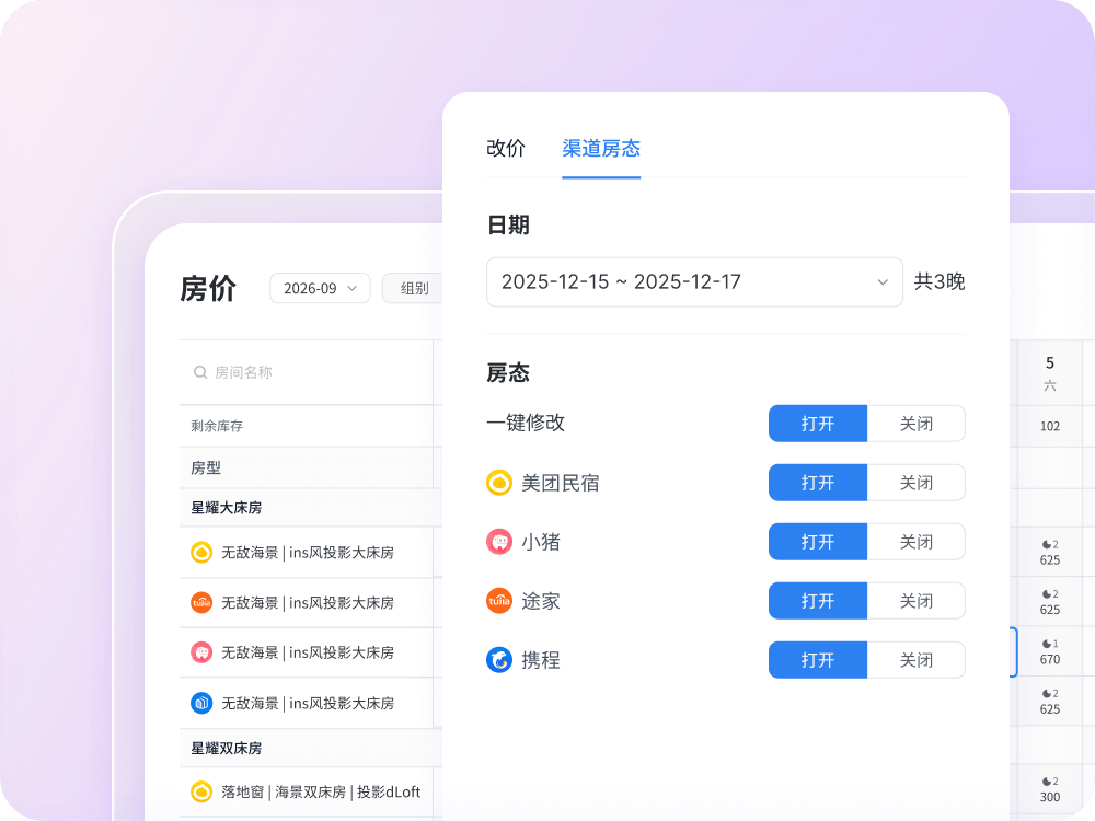 批量调价: 针对多个日期、多套房源、多个渠道一次性调整价格。