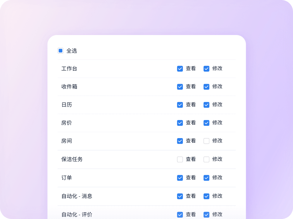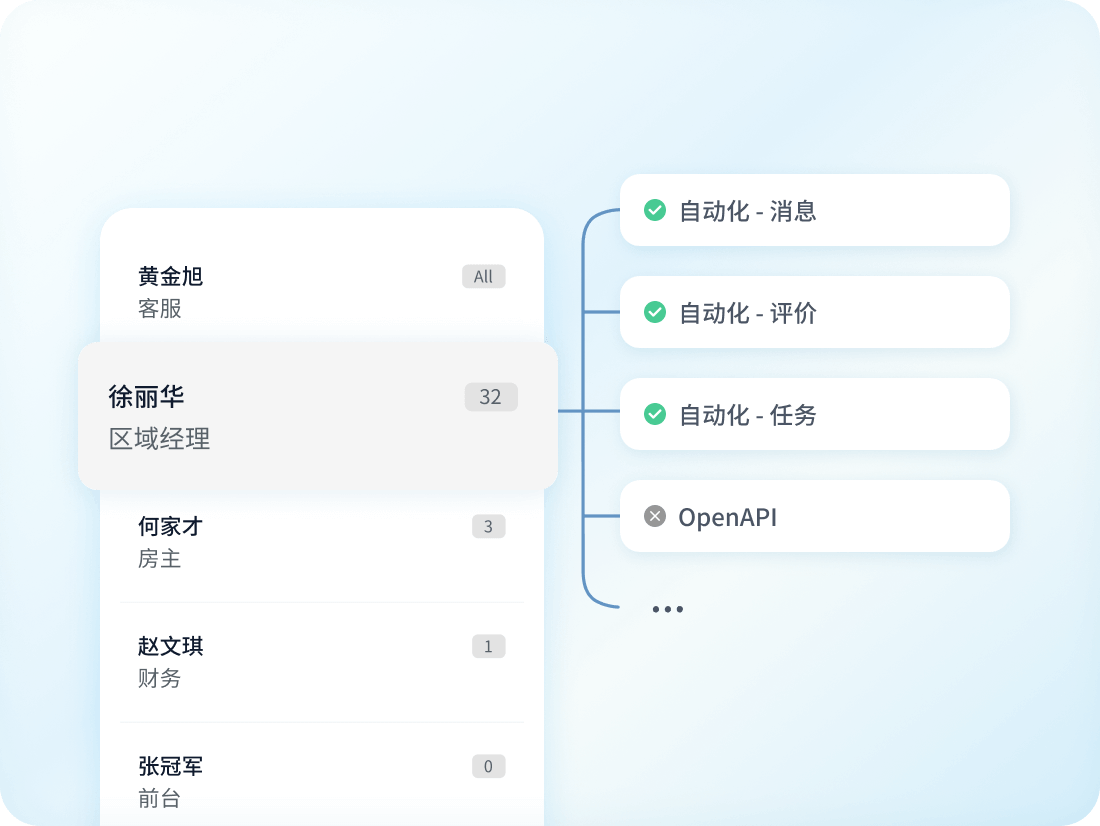 民宿运营需要团队协作,百房易让每位成员获得所需工具与权限,而您始终保持全局掌控。